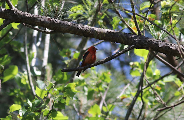 At the time, I noted this Tanager as a Scarlet, but the bill was super orange looking so I am wondering could it be a Western Tanager?