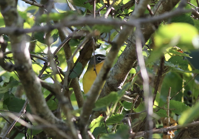 Initially I pegged this little guy as a Hooded Warbler but I see now its a Wilson's, found at BMC.