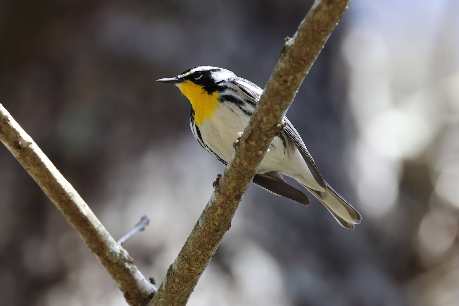 n Yellow-throated Warbler and it wasn't hard to find it in the branches above my head. I have pretty bad hearing but these beauts are loud and clear for me.