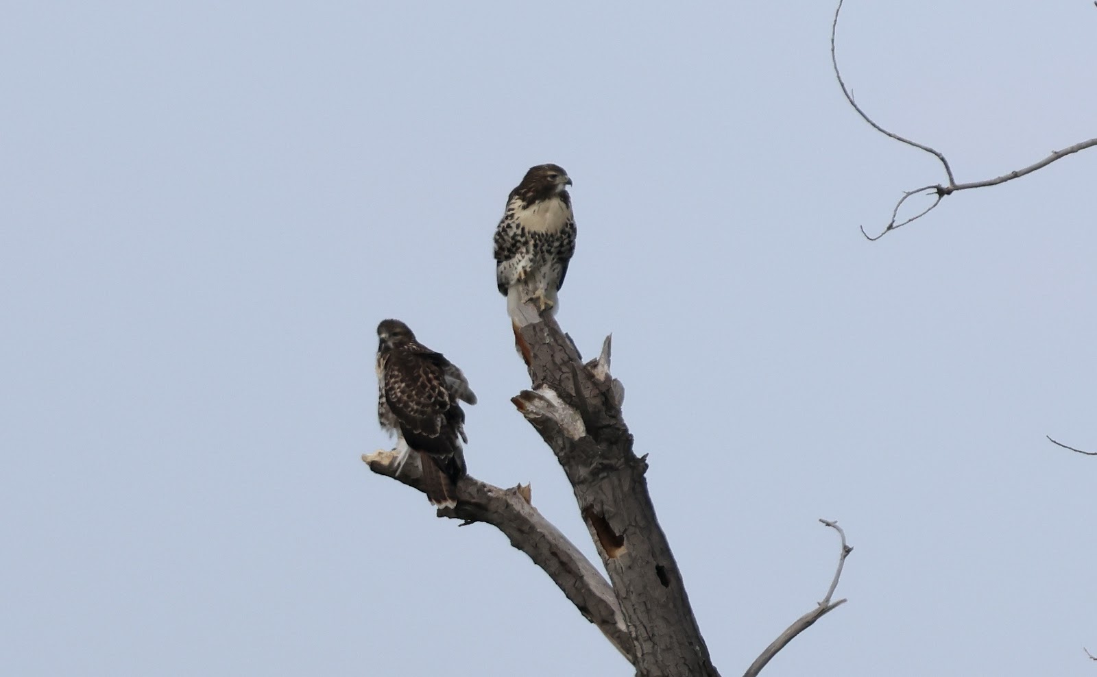 Western Red-tailed Hawks look very different than ours. These were young light morphs.