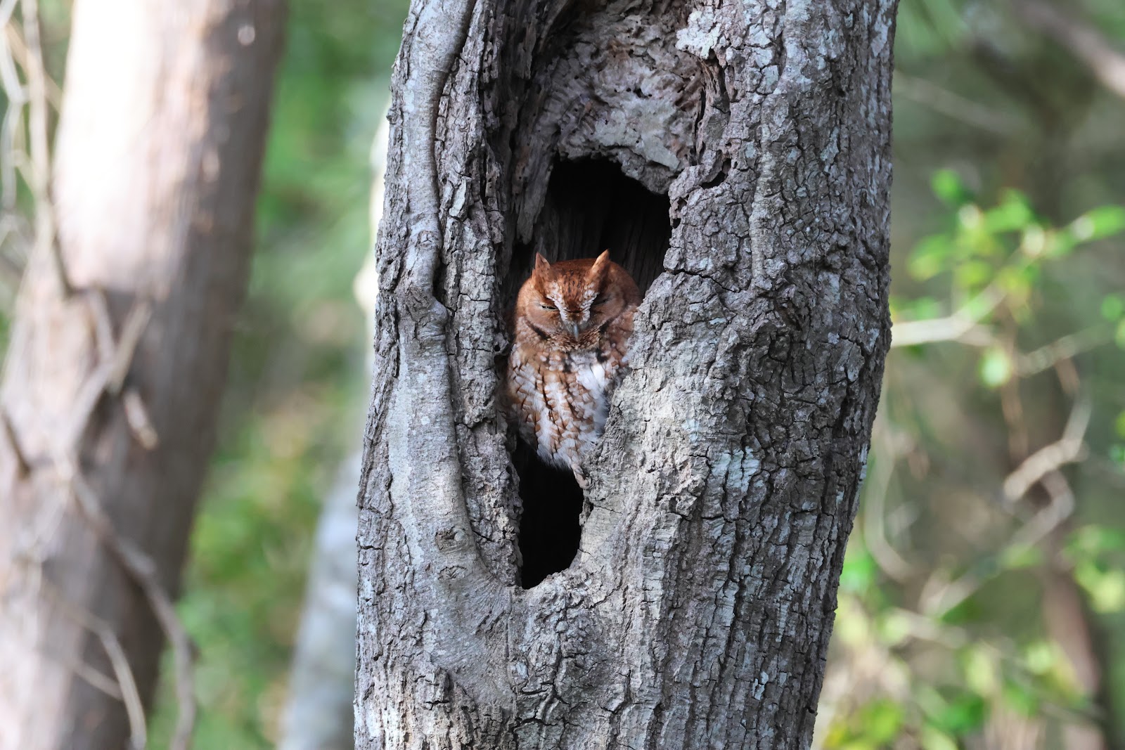 We finished up after lunch and took the next ferry back. Bob knew of a Eastern Screech Owl that would sun itself in its roost on cold days and this day certainly qualified so the three of us paid it a visit.